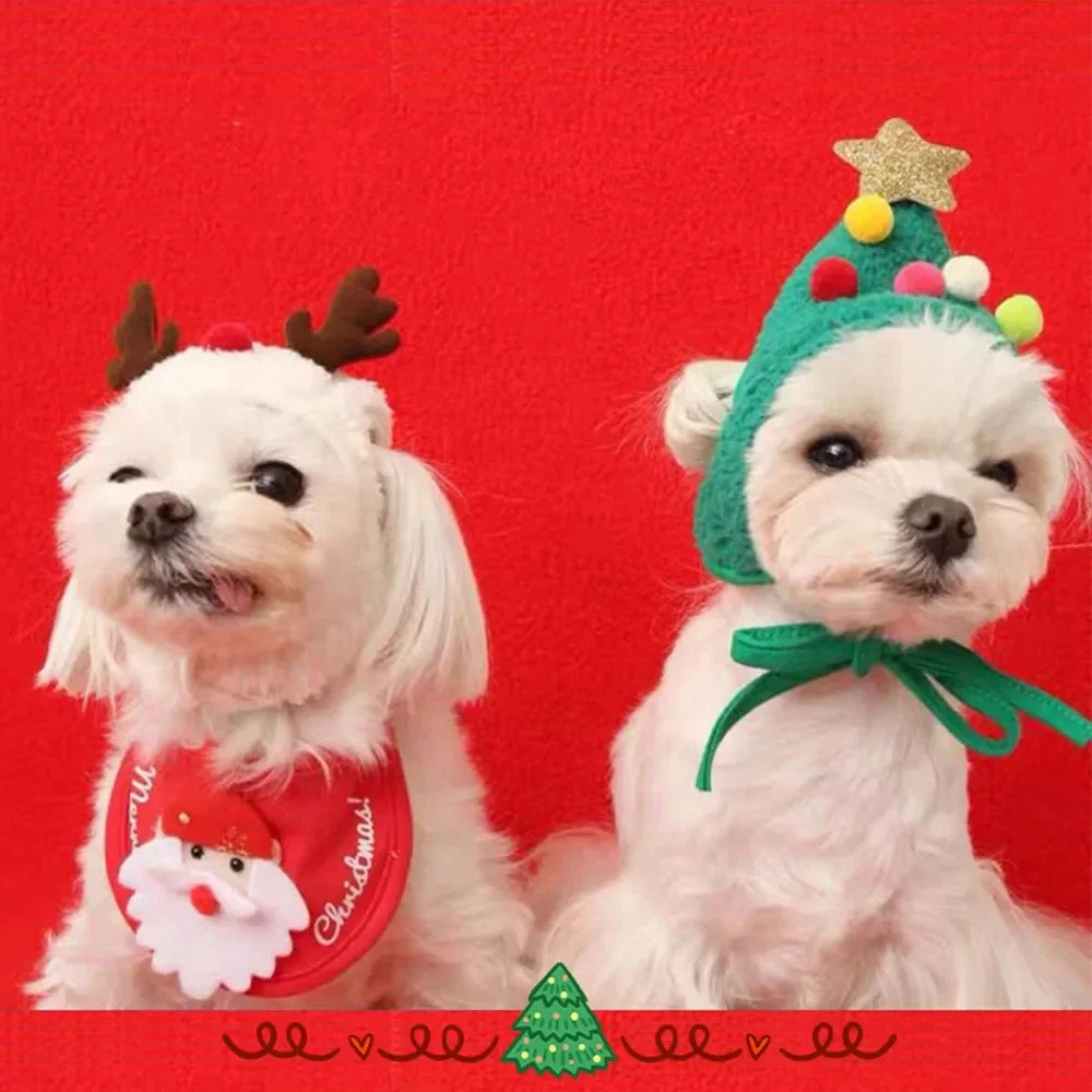 2. Xmas Pet Outfit – Santa & Elk Hat with Bib/Scarf for Dogs & Cats