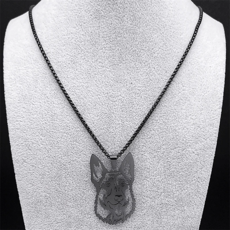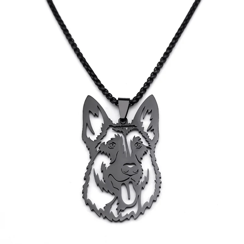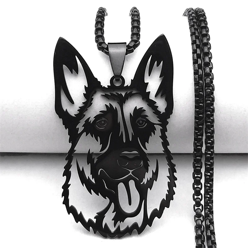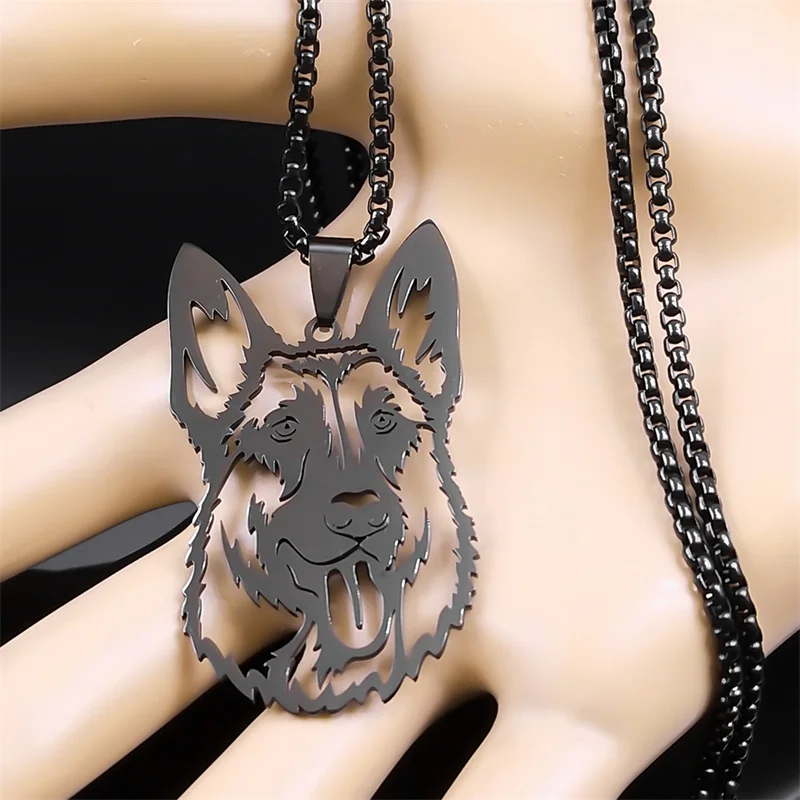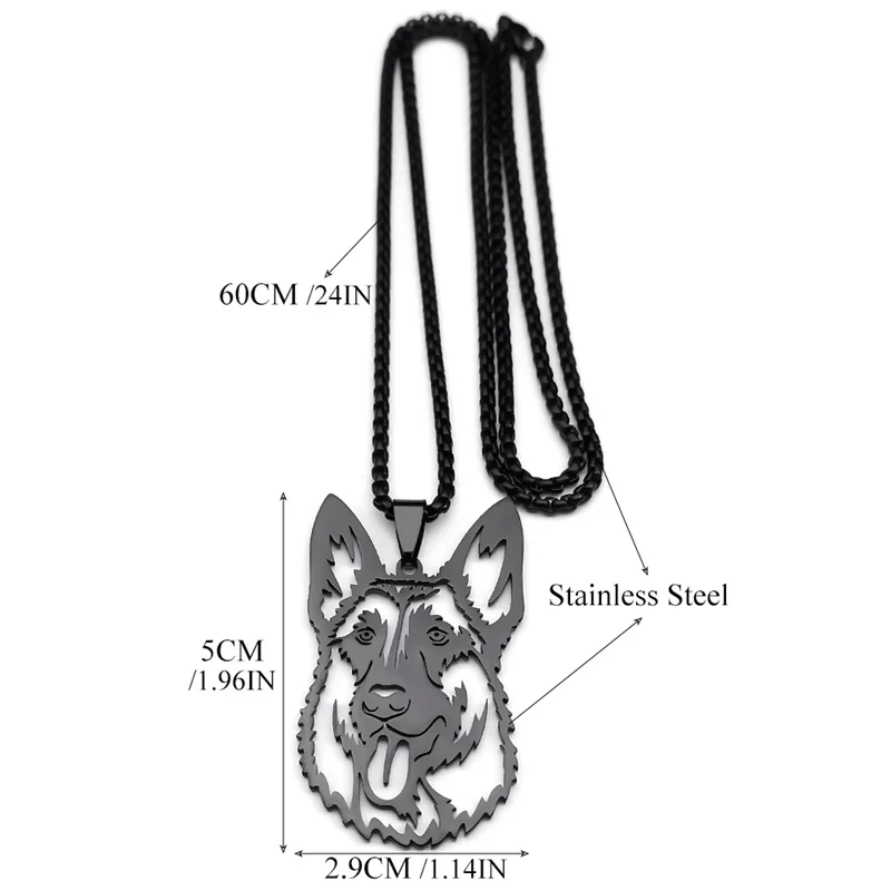 Show your love for dogs with this stylish German Shepherd pendant necklace. Crafted from high-quality stainless steel, it offers durability and a sleek black finish. The hip-hop inspired design adds a bold, modern touch to any outfit. Suitable for both men and women, it’s perfect for everyday wear or special occasions. The detailed German Shepherd pendant symbolizes loyalty and strength. Its sturdy chain provides a comfortable and secure fit. The black color gives it a timeless and versatile appeal. It’s resistant to tarnishing, rust, and fading for long-lasting shine. This necklace makes an ideal gift for dog lovers and pet owners alike. Express your personality and passion for pets with this unique punk-style accessory.