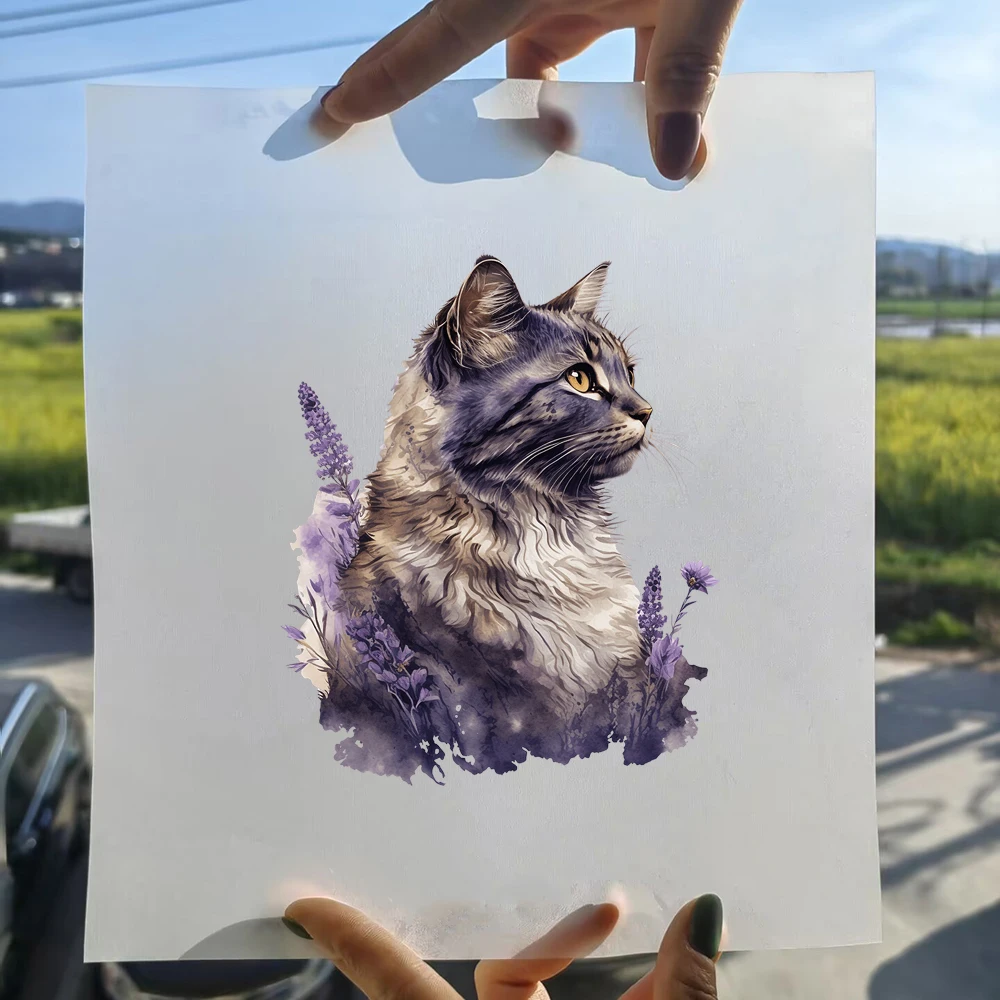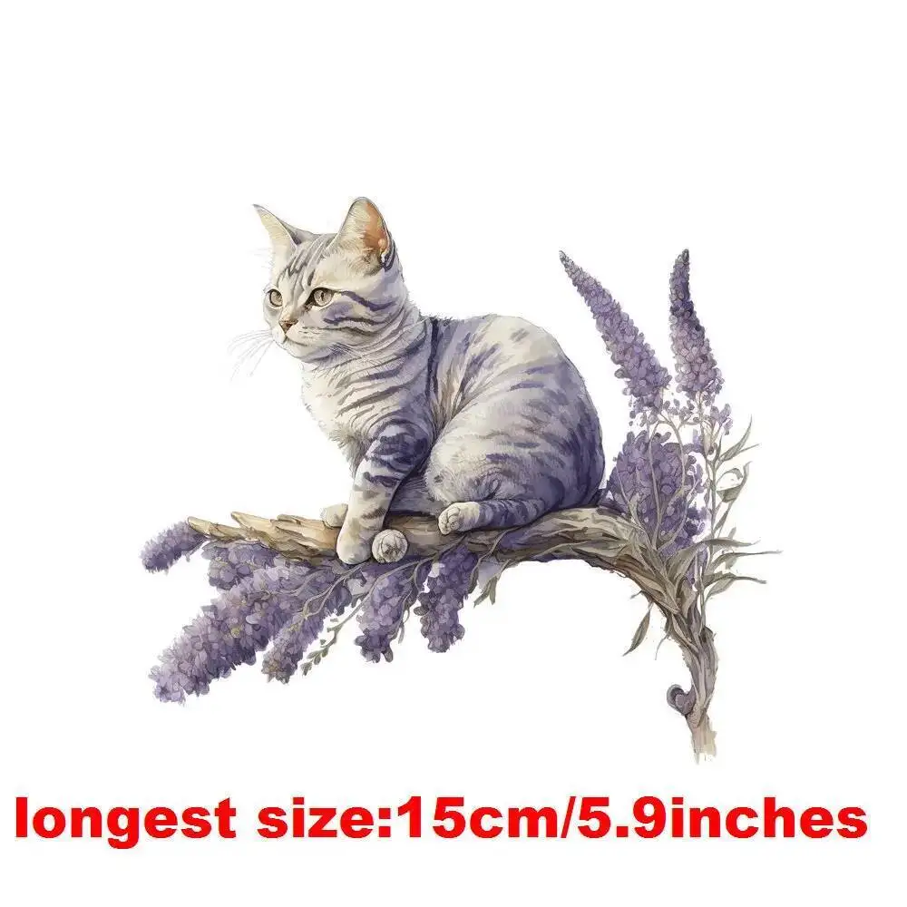 5. Heat Transfer Lavender Cat Stickers for Clothes