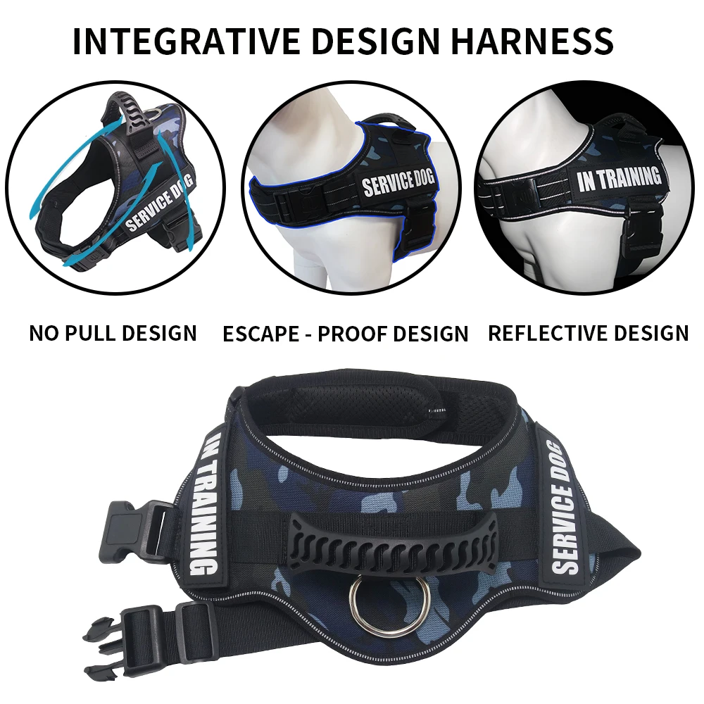 Service Dog Harness,No-Pull Emotional Support Pet Vest Harness,Reflective Breathable and Adjustable Pet Halters(Blue camouflage)