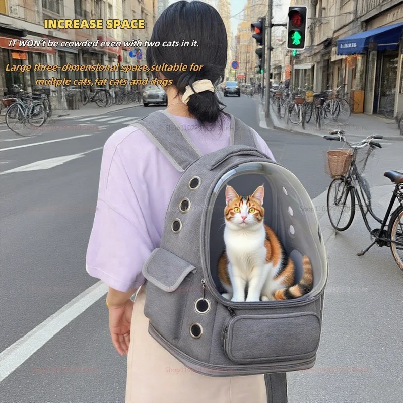 Take your furry friend on the go with this transparent pet carrier backpack. Designed for cats and small pets, it offers comfort, safety, and style during travel. The transparent front gives your pet a full view of their surroundings, helping reduce anxiety. Ample ventilation holes ensure steady airflow to keep your pet cool and relaxed. Its ergonomic shoulder straps make carrying easy and comfortable for pet owners. The lightweight yet durable design ensures long-lasting use. The spacious interior gives your cat room to move and rest comfortably. Perfect for outdoor adventures, vet visits, or daily errands, it’s both functional and fashionable. The sturdy base keeps your pet stable during transport. Enjoy stress-free travel with this breathable and stylish transparent pet backpack.
